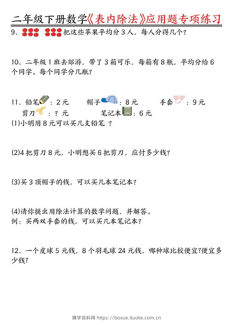 二下数学表内除法应用题专项练习(空白+答案16页)博学资料网1年前发布关注私信4613二下数学表内除法应用题专项练习(空白+答案16页)此内容为付费资源,请付费后查看¥12.8¥29.9VIP会员免费钻石VIP免费立即购买您当前未登录!建议登陆后购买,可保存购买订单格式pdf页数16 页大小3.76 MB付费资源 ——预览已结束,还剩14页未读——开通会员后可免费下载高清完整文档 © 版权声明文章版权归作者所有,未经允许请勿转载。THE END小学数学 喜欢就支持一下吧点赞13 分享QQ空间微博QQ好友海报分享复制链接收藏