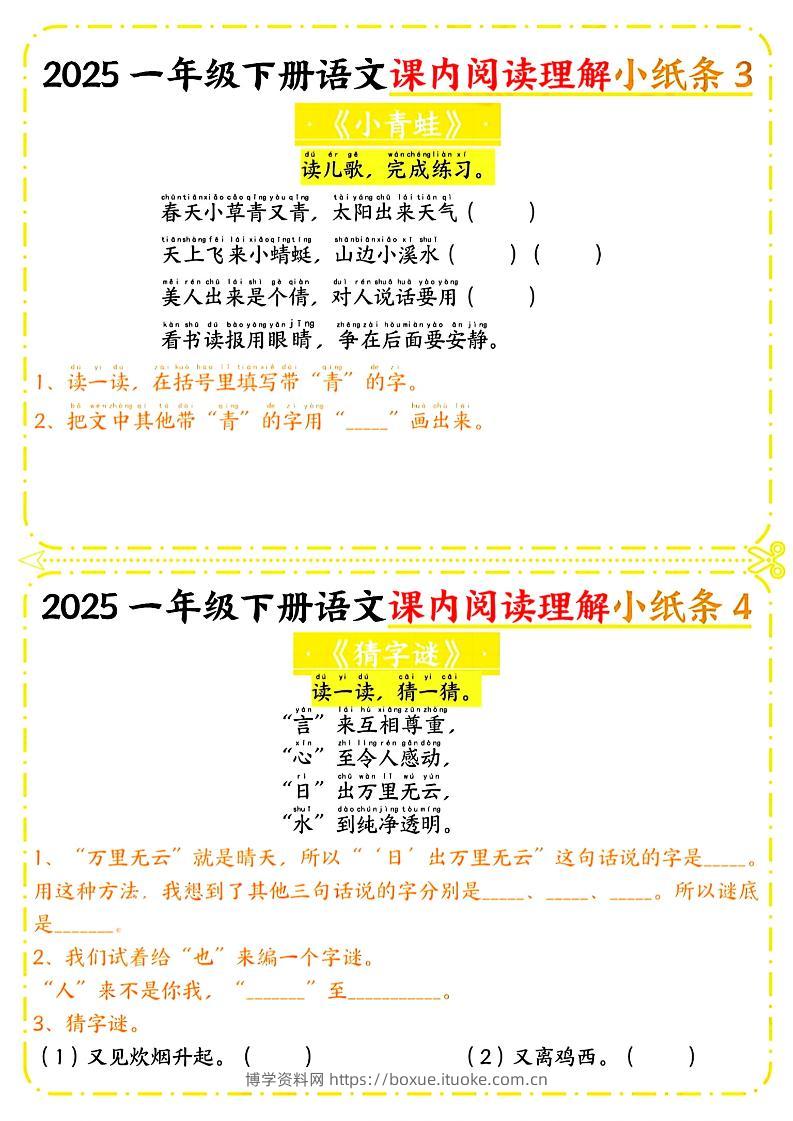 一年级下册语文课内阅读小纸条(黄色版)博学资料网10个月前发布关注私信3110一年级下册语文课内阅读小纸条(黄色版)此内容为付费资源,请付费后查看¥6.8¥29.9VIP会员免费钻石VIP免费立即购买您当前未登录!建议登陆后购买,可保存购买订单格式pdf页数16 页大小7.14 MB付费资源 ——预览已结束,还剩14页未读——开通会员后可免费下载高清完整文档 © 版权声明文章版权归作者所有,未经允许请勿转载。THE END小学语文 喜欢就支持一下吧点赞10 分享QQ空间微博QQ好友海报分享复制链接收藏