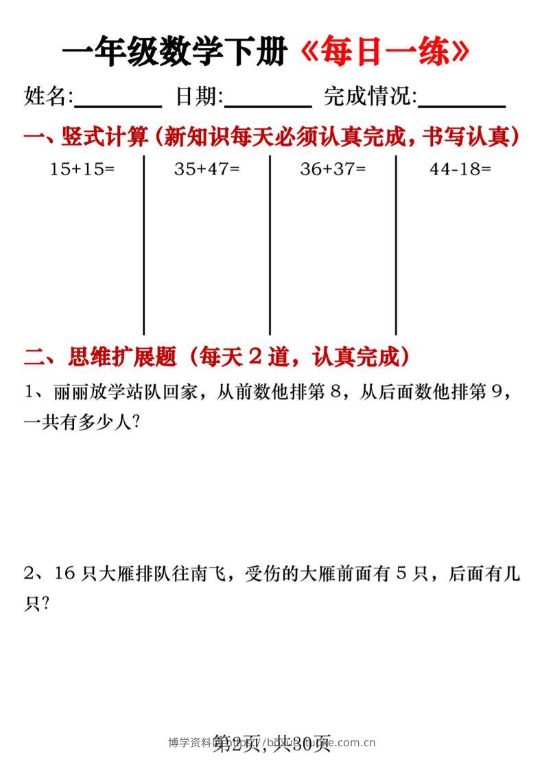 一年级数学下册竖式计算+思维应用题《每日一练》30天博学资料网10个月前发布关注私信299一年级数学下册竖式计算+思维应用题《每日一练》30天此内容为付费资源,请付费后查看¥6.8¥29.9VIP会员免费钻石VIP免费立即购买您当前未登录!建议登陆后购买,可保存购买订单格式pdf页数30 页大小6.24 MB付费资源 ——预览已结束,还剩28页未读——开通会员后可免费下载高清完整文档 © 版权声明文章版权归作者所有,未经允许请勿转载。THE END小学数学 喜欢就支持一下吧点赞9 分享QQ空间微博QQ好友海报分享复制链接收藏
