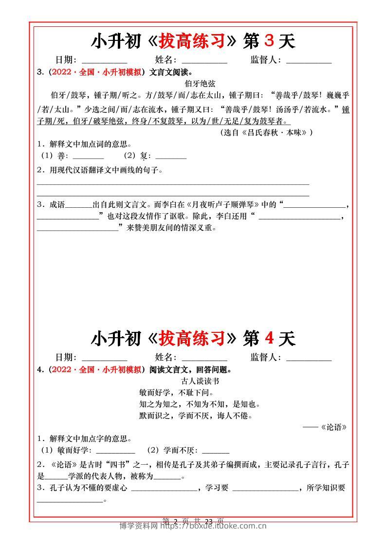小升初语文《拔高练习》20天_博学资料网12个月前发布关注私信479小升初语文《拔高练习》20天_此内容为付费资源,请付费后查看¥9.9¥29.9VIP会员免费钻石VIP免费立即购买您当前未登录!建议登陆后购买,可保存购买订单格式pdf页数23 页大小465.95 KB付费资源 ——预览已结束,还剩21页未读——开通会员后可免费下载高清完整文档 © 版权声明文章版权归作者所有,未经允许请勿转载。THE END小升初 喜欢就支持一下吧点赞9 分享QQ空间微博QQ好友海报分享复制链接收藏