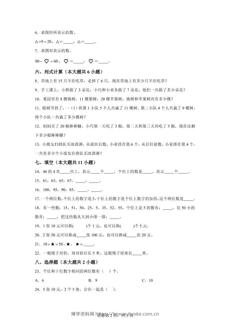 沪教版数学一年级下册第二单元《100以内数的认识》单元测试卷博学资料网9个月前发布关注私信2514沪教版数学一年级下册第二单元《100以内数的认识》单元测试卷此内容为付费资源,请付费后查看¥8.8¥29.9VIP会员免费钻石VIP免费立即购买您当前未登录!建议登陆后购买,可保存购买订单格式pdf页数9 页大小139.29 KB付费资源 ——预览已结束,还剩7页未读——开通会员后可免费下载高清完整文档 © 版权声明文章版权归作者所有,未经允许请勿转载。THE END小学数学 喜欢就支持一下吧点赞14 分享QQ空间微博QQ好友海报分享复制链接收藏