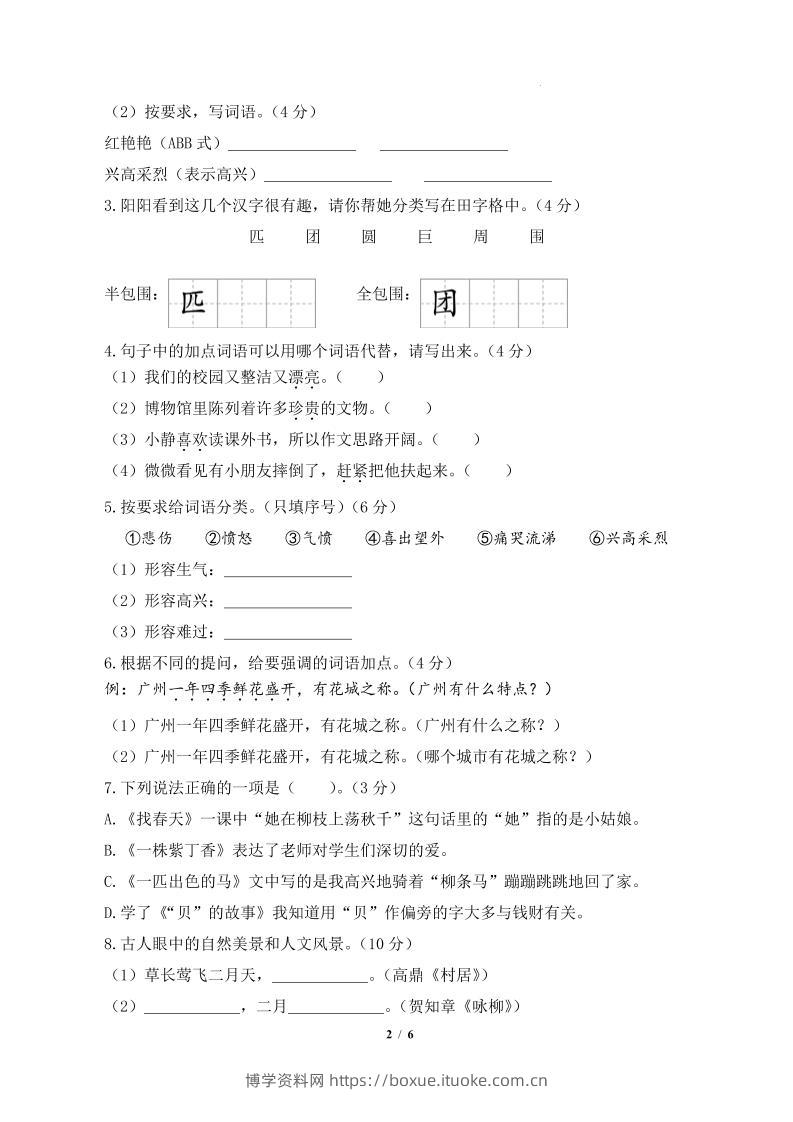 24-25学年二下语文期中素养测评卷(基础卷)含答题卡+答案13页博学资料网11个月前发布关注私信34524-25学年二下语文期中素养测评卷(基础卷)含答题卡+答案13页此内容为付费资源,请付费后查看¥9.9¥29.9VIP会员免费钻石VIP免费立即购买您当前未登录!建议登陆后购买,可保存购买订单格式pdf页数13 页大小1.61 MB付费资源 ——预览已结束,还剩11页未读——开通会员后可免费下载高清完整文档 © 版权声明文章版权归作者所有,未经允许请勿转载。THE END小学语文 喜欢就支持一下吧点赞5 分享QQ空间微博QQ好友海报分享复制链接收藏