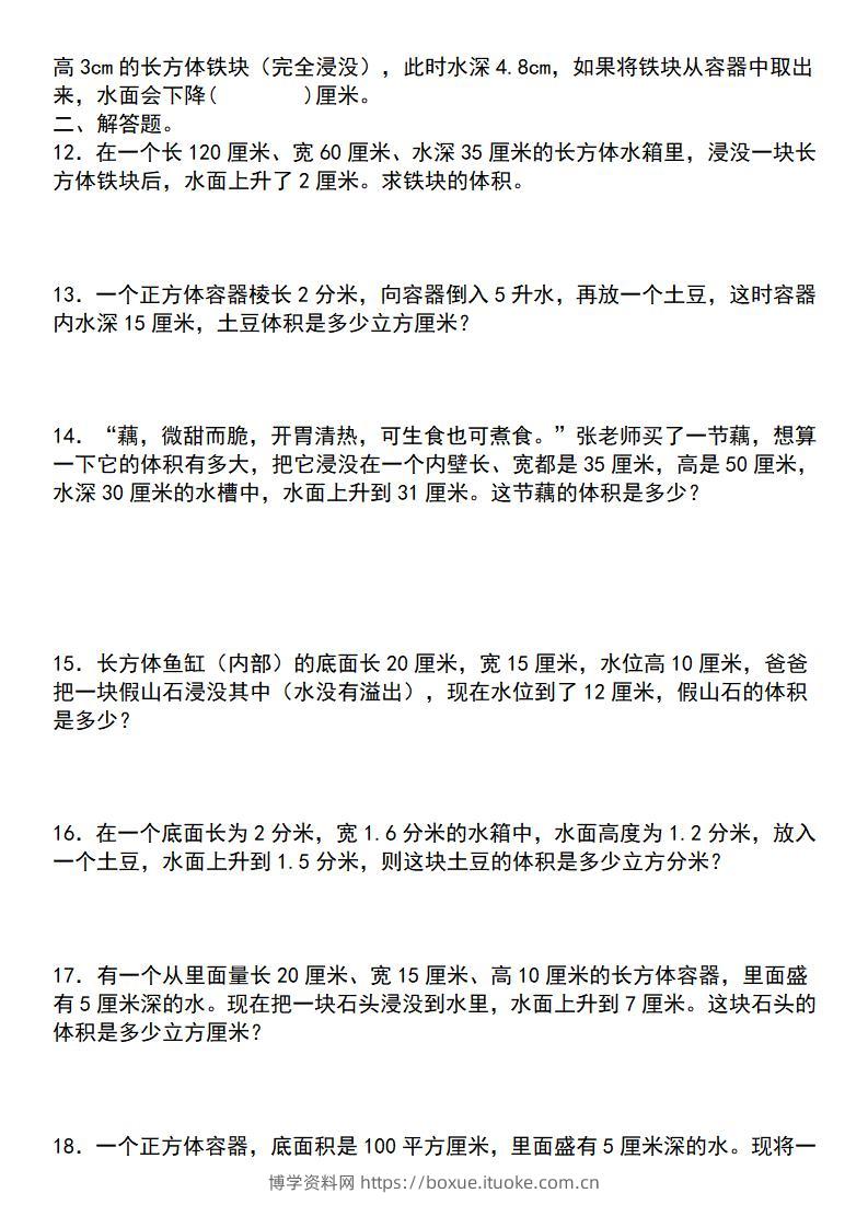 【通用版】五年级下册数学典型例题与相关拓展(3-2排水法求不规则物体的体积“一般问题”)博学资料网9个月前发布关注私信495【通用版】五年级下册数学典型例题与相关拓展(3-2排水法求不规则物体的体积“一般问题”)此内容为付费资源,请付费后查看¥12.8¥29.9VIP会员免费钻石VIP免费立即购买您当前未登录!建议登陆后购买,可保存购买订单格式pdf页数11 页大小764.36 KB付费资源 ——预览已结束,还剩9页未读——开通会员后可免费下载高清完整文档 © 版权声明文章版权归作者所有,未经允许请勿转载。THE END小学数学 喜欢就支持一下吧点赞5 分享QQ空间微博QQ好友海报分享复制链接收藏