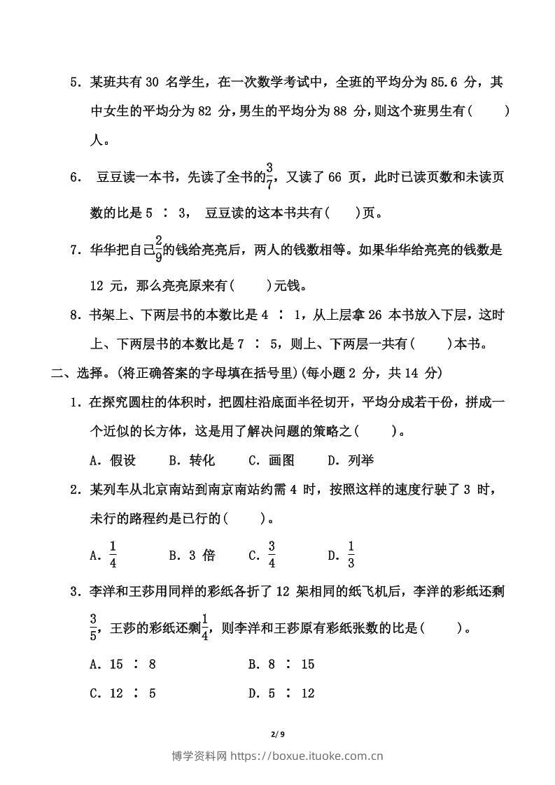【精选】苏教版六年级下册数学第三单元《解决问题的策略》测试卷(含答案)博学资料网9个月前发布关注私信2213【精选】苏教版六年级下册数学第三单元《解决问题的策略》测试卷(含答案)此内容为付费资源,请付费后查看¥12.8¥29.9VIP会员免费钻石VIP免费立即购买您当前未登录!建议登陆后购买,可保存购买订单格式pdf页数9 页大小551.14 KB付费资源 ——预览已结束,还剩7页未读——开通会员后可免费下载高清完整文档 © 版权声明文章版权归作者所有,未经允许请勿转载。THE END小学数学 喜欢就支持一下吧点赞13 分享QQ空间微博QQ好友海报分享复制链接收藏