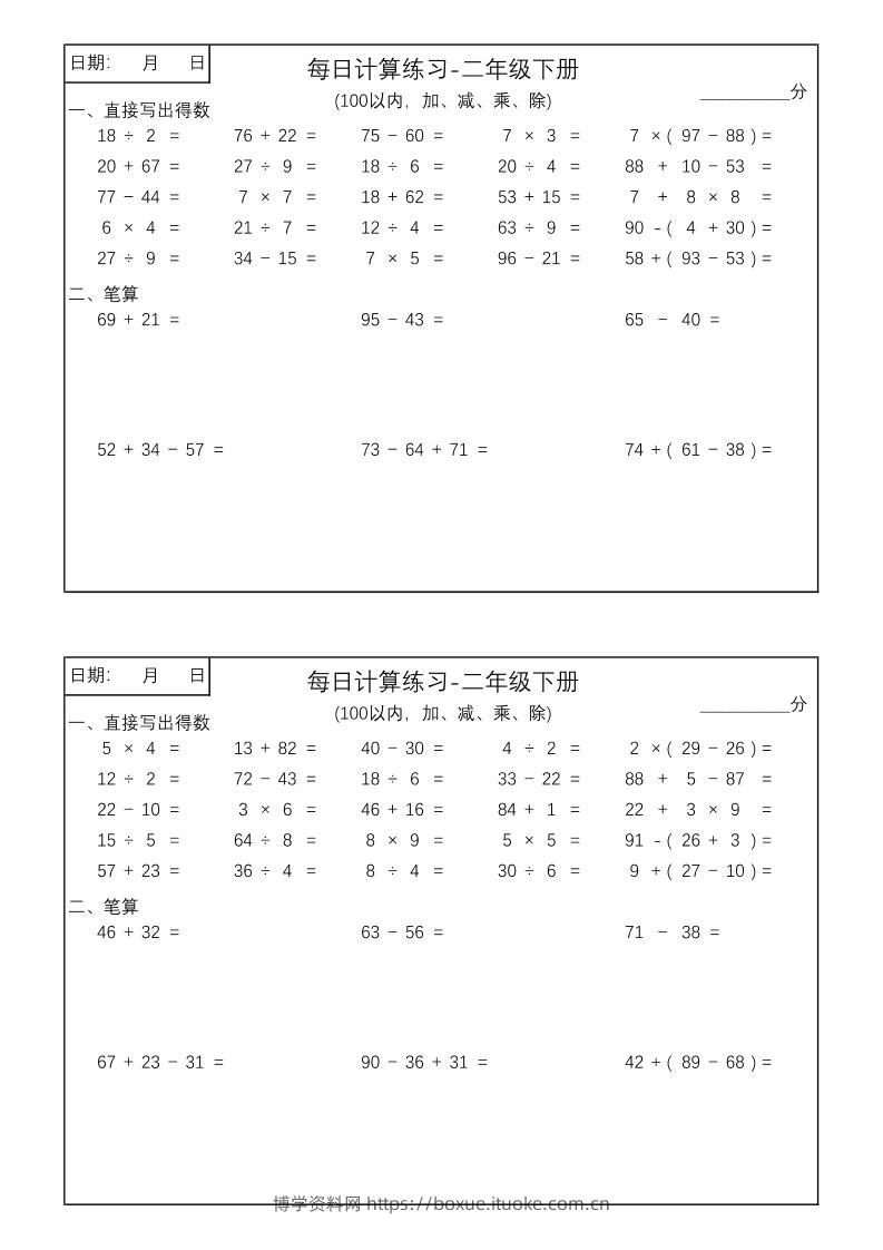 二年级数学100以内加减乘除每日计算练习【计算口算题】博学资料网9个月前发布关注私信368二年级数学100以内加减乘除每日计算练习【计算口算题】此内容为付费资源,请付费后查看¥6.8¥29.9VIP会员免费钻石VIP免费立即购买您当前未登录!建议登陆后购买,可保存购买订单格式pdf页数15 页大小1.07 MB付费资源 ——预览已结束,还剩13页未读——开通会员后可免费下载高清完整文档 © 版权声明文章版权归作者所有,未经允许请勿转载。THE END小学数学 喜欢就支持一下吧点赞8 分享QQ空间微博QQ好友海报分享复制链接收藏