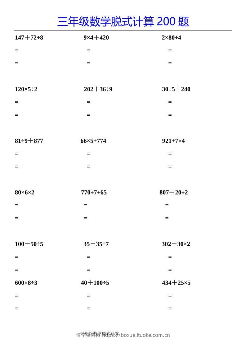三下数学【脱式计算200题】博学资料网9个月前发布关注私信2614三下数学【脱式计算200题】此内容为付费资源,请付费后查看¥8.8¥29.9VIP会员免费钻石VIP免费立即购买您当前未登录!建议登陆后购买,可保存购买订单格式pdf页数12 页大小288.53 KB付费资源 ——预览已结束,还剩10页未读——开通会员后可免费下载高清完整文档 © 版权声明文章版权归作者所有,未经允许请勿转载。THE END小学数学 喜欢就支持一下吧点赞14 分享QQ空间微博QQ好友海报分享复制链接收藏