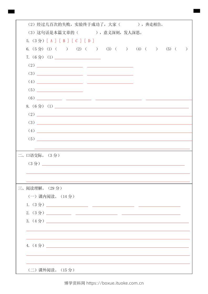 四下语文第一次月考(第一二单元)(答题卡)博学资料网11个月前发布关注私信476四下语文第一次月考(第一二单元)(答题卡)此内容为付费资源,请付费后查看¥9.9¥29.9VIP会员免费钻石VIP免费立即购买您当前未登录!建议登陆后购买,可保存购买订单格式pdf页数5 页大小1.03 MB付费资源 ——预览已结束,还剩3页未读——开通会员后可免费下载高清完整文档 © 版权声明文章版权归作者所有,未经允许请勿转载。THE END小学语文 喜欢就支持一下吧点赞6 分享QQ空间微博QQ好友海报分享复制链接收藏