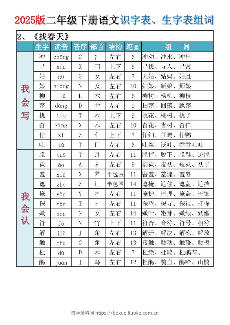 2025新版·二年级下册语文识字表、生字表组词博学资料网9个月前发布关注私信39142025新版·二年级下册语文识字表、生字表组词此内容为付费资源,请付费后查看¥9.9¥29.9VIP会员免费钻石VIP免费立即购买您当前未登录!建议登陆后购买,可保存购买订单格式pdf页数34 页大小3.16 MB付费资源 ——预览已结束,还剩32页未读——开通会员后可免费下载高清完整文档 © 版权声明文章版权归作者所有,未经允许请勿转载。THE END小学语文 喜欢就支持一下吧点赞14 分享QQ空间微博QQ好友海报分享复制链接收藏