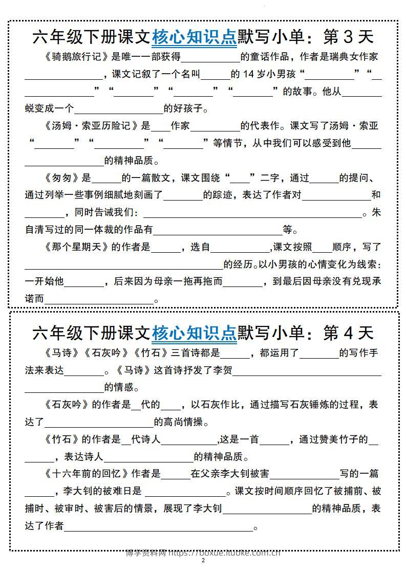 六年级下册语文课文核心知识点默写小单博学资料网9个月前发布关注私信3514六年级下册语文课文核心知识点默写小单此内容为付费资源,请付费后查看¥6.8¥29.9VIP会员免费钻石VIP免费立即购买您当前未登录!建议登陆后购买,可保存购买订单格式pdf页数16 页大小971.82 KB付费资源 ——预览已结束,还剩14页未读——开通会员后可免费下载高清完整文档 © 版权声明文章版权归作者所有,未经允许请勿转载。THE END小学语文 喜欢就支持一下吧点赞14 分享QQ空间微博QQ好友海报分享复制链接收藏