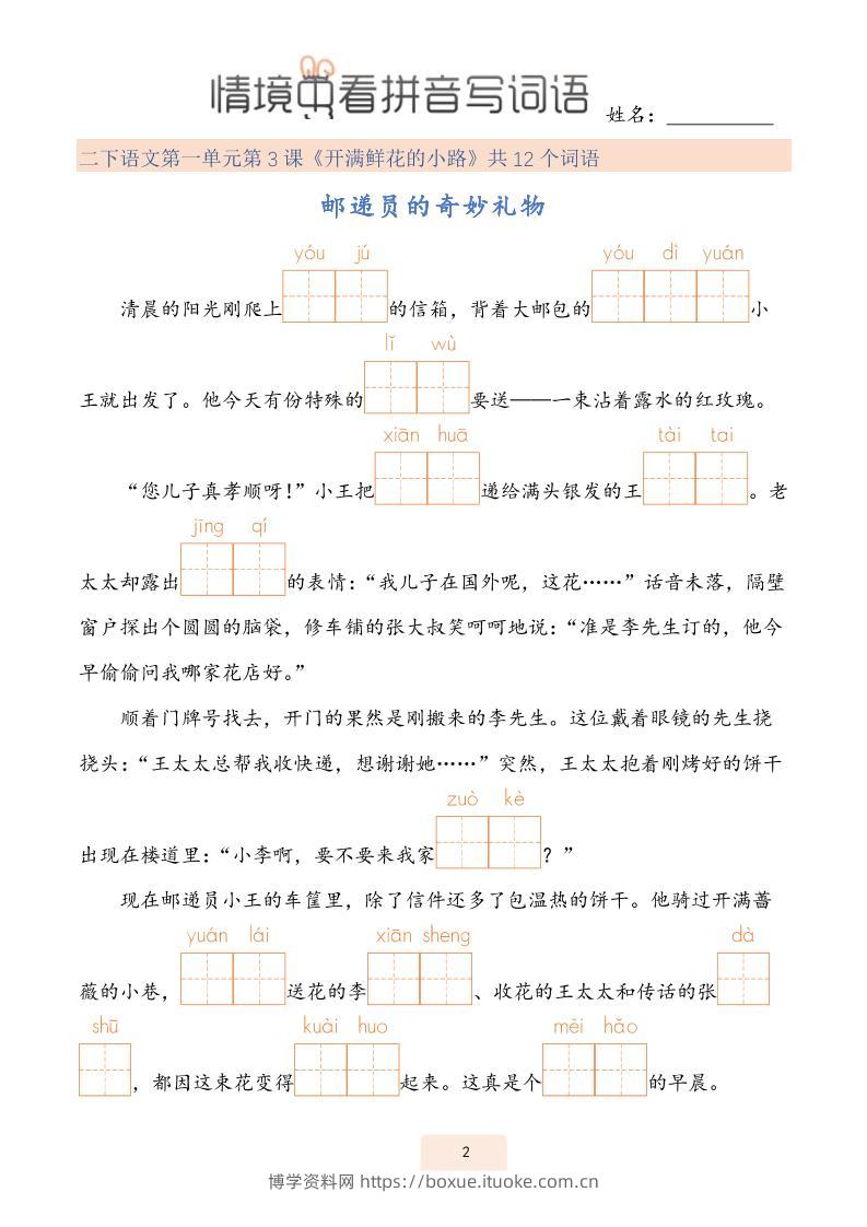 二下语文情境中看拼音写词语(43页)博学资料网9个月前发布关注私信3315二下语文情境中看拼音写词语(43页)此内容为付费资源,请付费后查看¥6.8¥29.9VIP会员免费钻石VIP免费立即购买您当前未登录!建议登陆后购买,可保存购买订单格式pdf页数43 页大小1.19 MB付费资源 ——预览已结束,还剩41页未读——开通会员后可免费下载高清完整文档 © 版权声明文章版权归作者所有,未经允许请勿转载。THE END小学语文 喜欢就支持一下吧点赞15 分享QQ空间微博QQ好友海报分享复制链接收藏