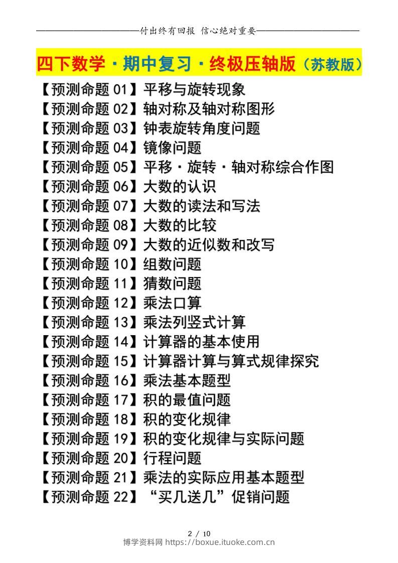 四下数学期中复习·终极压轴版(原卷版)苏教版10页博学资料网9个月前发布关注私信4914四下数学期中复习·终极压轴版(原卷版)苏教版10页此内容为付费资源,请付费后查看¥9.9¥29.9VIP会员免费钻石VIP免费立即购买您当前未登录!建议登陆后购买,可保存购买订单格式pdf页数10 页大小1.36 MB付费资源 ——预览已结束,还剩8页未读——开通会员后可免费下载高清完整文档 © 版权声明文章版权归作者所有,未经允许请勿转载。THE END小学数学 喜欢就支持一下吧点赞14 分享QQ空间微博QQ好友海报分享复制链接收藏
