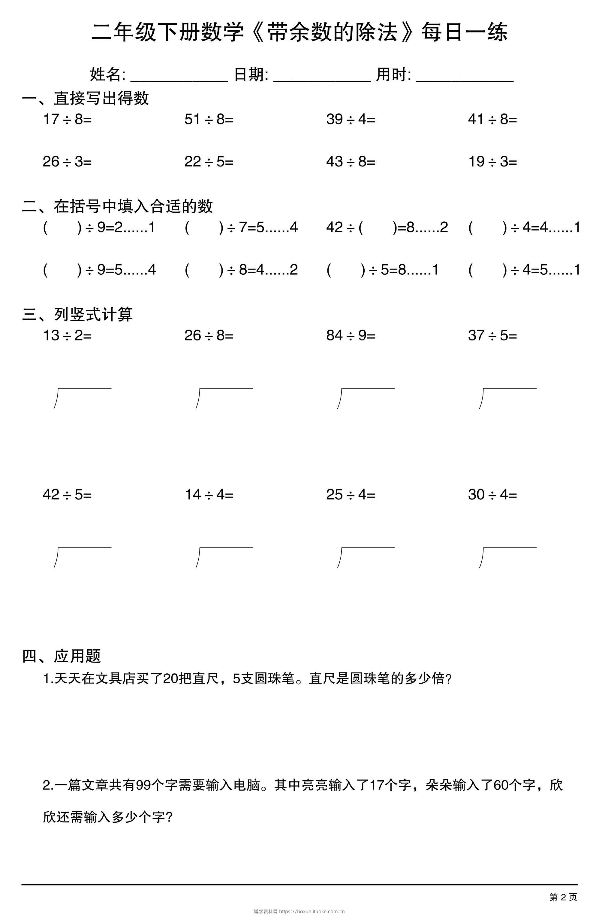 二下数学【《带余数的除法》每日一练】博学资料网10个月前发布关注私信3315二下数学【《带余数的除法》每日一练】此内容为付费资源,请付费后查看¥12.8¥29.9VIP会员免费钻石VIP免费立即购买您当前未登录!建议登陆后购买,可保存购买订单格式pdf页数31 页大小234.30 KB付费资源 ——预览已结束,还剩29页未读——开通会员后可免费下载高清完整文档 © 版权声明文章版权归作者所有,未经允许请勿转载。THE END小学数学 喜欢就支持一下吧点赞15 分享QQ空间微博QQ好友海报分享复制链接收藏