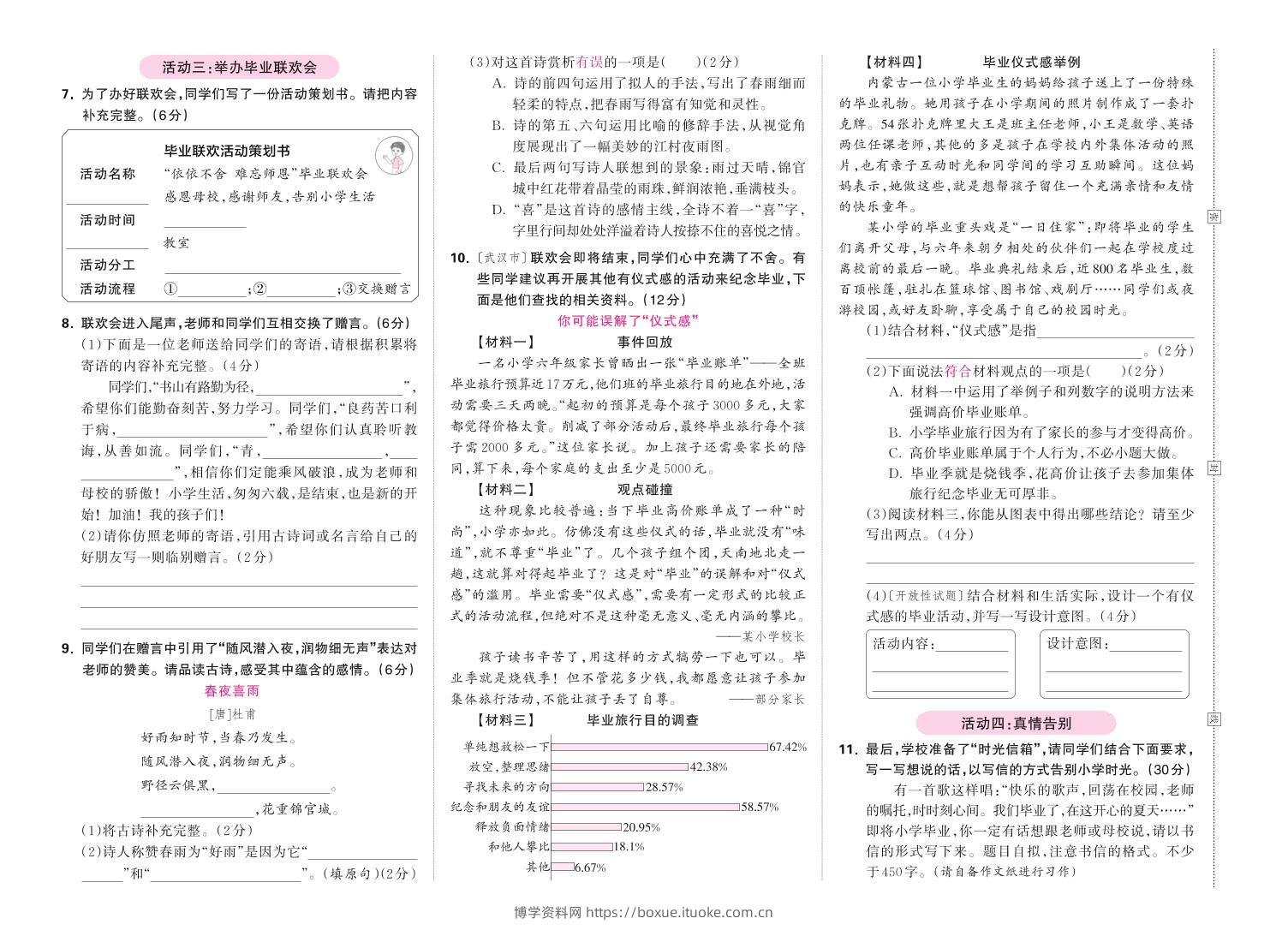 春六下语文第六单元古诗词诵读综合情景测评卷博学资料网8个月前发布关注私信4815春六下语文第六单元古诗词诵读综合情景测评卷此内容为付费资源,请付费后查看¥12.8¥29.9VIP会员免费钻石VIP免费立即购买您当前未登录!建议登陆后购买,可保存购买订单格式pdf页数3 页大小3.96 MB付费资源 ——预览已结束,还剩1页未读——开通会员后可免费下载高清完整文档 © 版权声明文章版权归作者所有,未经允许请勿转载。THE END小学语文 喜欢就支持一下吧点赞15 分享QQ空间微博QQ好友海报分享复制链接收藏
