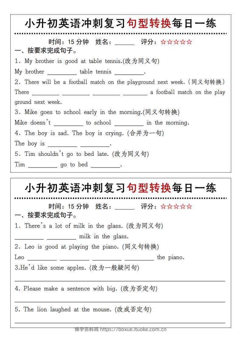 《小升初英语冲刺复习句型转换每日一练》博学资料网11个月前发布关注私信368《小升初英语冲刺复习句型转换每日一练》此内容为付费资源,请付费后查看¥9.9¥29.9VIP会员免费钻石VIP免费立即购买您当前未登录!建议登陆后购买,可保存购买订单格式pdf页数23 页大小9.57 MB付费资源 ——预览已结束,还剩21页未读——开通会员后可免费下载高清完整文档 © 版权声明文章版权归作者所有,未经允许请勿转载。THE END小升初 喜欢就支持一下吧点赞8 分享QQ空间微博QQ好友海报分享复制链接收藏