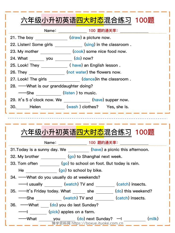六年级小升初英语四大时态混合练习(含答案)博学资料网11个月前发布关注私信3015六年级小升初英语四大时态混合练习(含答案)此内容为付费资源,请付费后查看¥9.9¥29.9VIP会员免费钻石VIP免费立即购买您当前未登录!建议登陆后购买,可保存购买订单格式pdf页数10 页大小318.67 KB付费资源 ——预览已结束,还剩8页未读——开通会员后可免费下载高清完整文档 © 版权声明文章版权归作者所有,未经允许请勿转载。THE END小升初 喜欢就支持一下吧点赞15 分享QQ空间微博QQ好友海报分享复制链接收藏