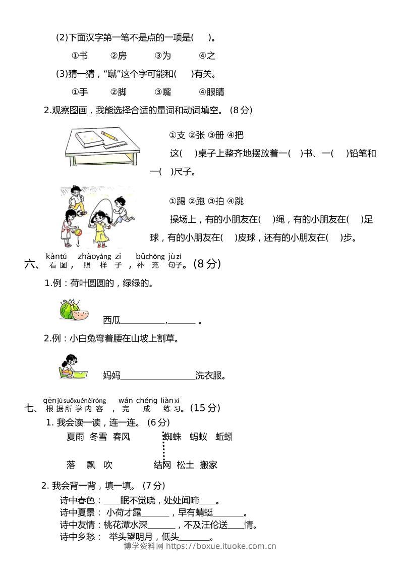 统编版2024-2025学年一年级语文下册期末综合复习卷博学资料网8个月前发布关注私信478统编版2024-2025学年一年级语文下册期末综合复习卷此内容为付费资源,请付费后查看¥6.8¥29.9VIP会员免费钻石VIP免费立即购买您当前未登录!建议登陆后购买,可保存购买订单格式docx页数6 页大小259.69 KB付费资源 ——预览已结束,还剩4页未读——开通会员后可免费下载高清完整文档 © 版权声明文章版权归作者所有,未经允许请勿转载。THE END小学语文 喜欢就支持一下吧点赞8 分享QQ空间微博QQ好友海报分享复制链接收藏