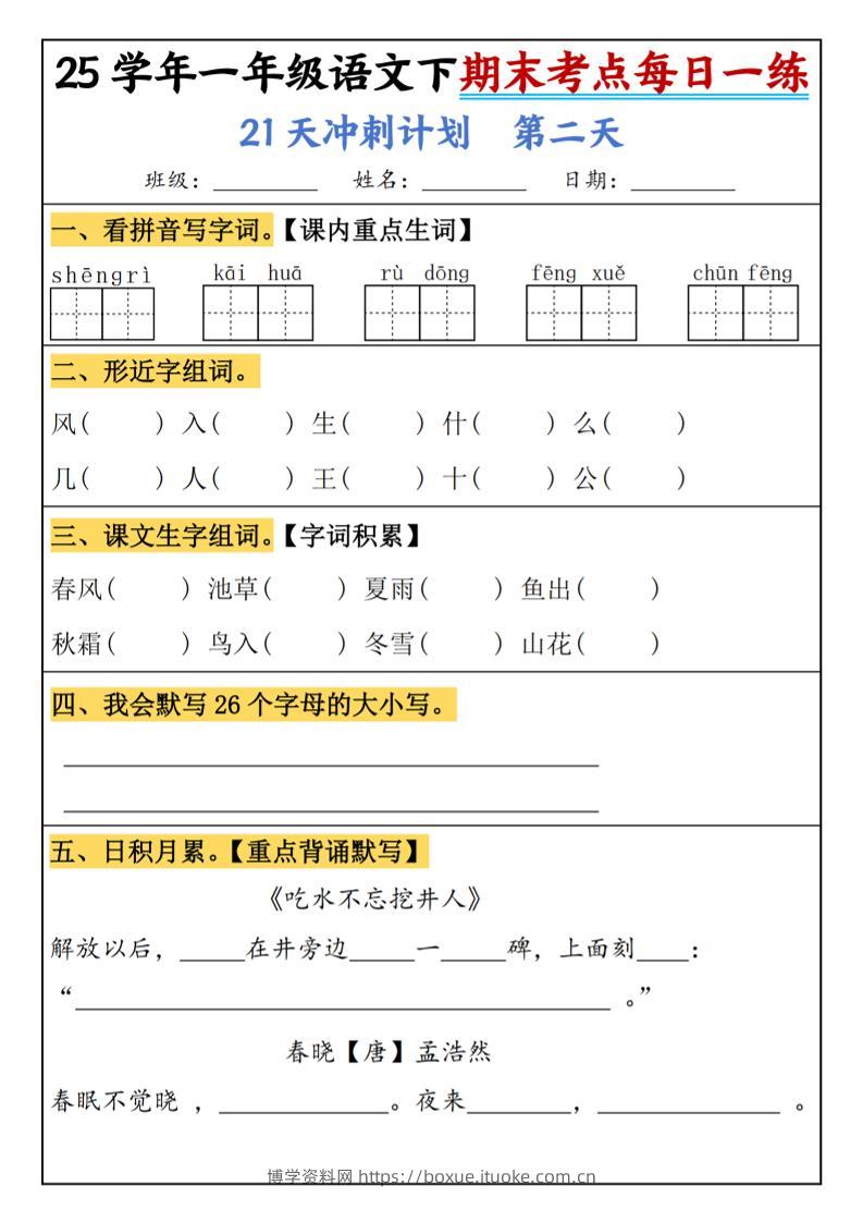 25春一年级语文下期末21天冲刺计划每日一练-动手博学资料网8个月前发布关注私信201025春一年级语文下期末21天冲刺计划每日一练-动手此内容为付费资源,请付费后查看¥9.9¥29.9VIP会员免费钻石VIP免费立即购买您当前未登录!建议登陆后购买,可保存购买订单格式pdf页数21 页大小7.52 MB付费资源 ——预览已结束,还剩19页未读——开通会员后可免费下载高清完整文档 © 版权声明文章版权归作者所有,未经允许请勿转载。THE END小学语文 喜欢就支持一下吧点赞10 分享QQ空间微博QQ好友海报分享复制链接收藏