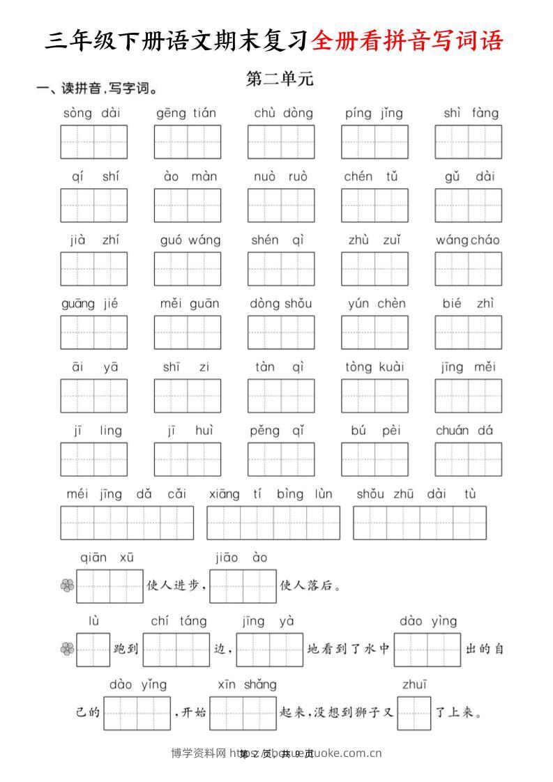 三下语文期末复习全册看拼音写词语(含答案9页)博学资料网8个月前发布关注私信2511三下语文期末复习全册看拼音写词语(含答案9页)此内容为付费资源,请付费后查看¥8.8¥29.9VIP会员免费钻石VIP免费立即购买您当前未登录!建议登陆后购买,可保存购买订单格式pdf页数9 页大小5.12 MB付费资源 ——预览已结束,还剩7页未读——开通会员后可免费下载高清完整文档 © 版权声明文章版权归作者所有,未经允许请勿转载。THE END小学语文 喜欢就支持一下吧点赞11 分享QQ空间微博QQ好友海报分享复制链接收藏