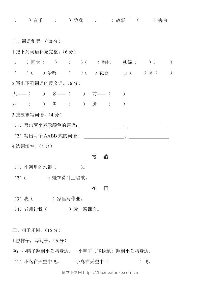 2024-2025学年一年级语文下册期末模拟卷博学资料网7个月前发布关注私信36142024-2025学年一年级语文下册期末模拟卷此内容为付费资源,请付费后查看¥9.9¥29.9VIP会员免费钻石VIP免费立即购买您当前未登录!建议登陆后购买,可保存购买订单格式pdf页数7 页大小292.33 KB付费资源 ——预览已结束,还剩5页未读——开通会员后可免费下载高清完整文档 © 版权声明文章版权归作者所有,未经允许请勿转载。THE END小学语文 喜欢就支持一下吧点赞14 分享QQ空间微博QQ好友海报分享复制链接收藏