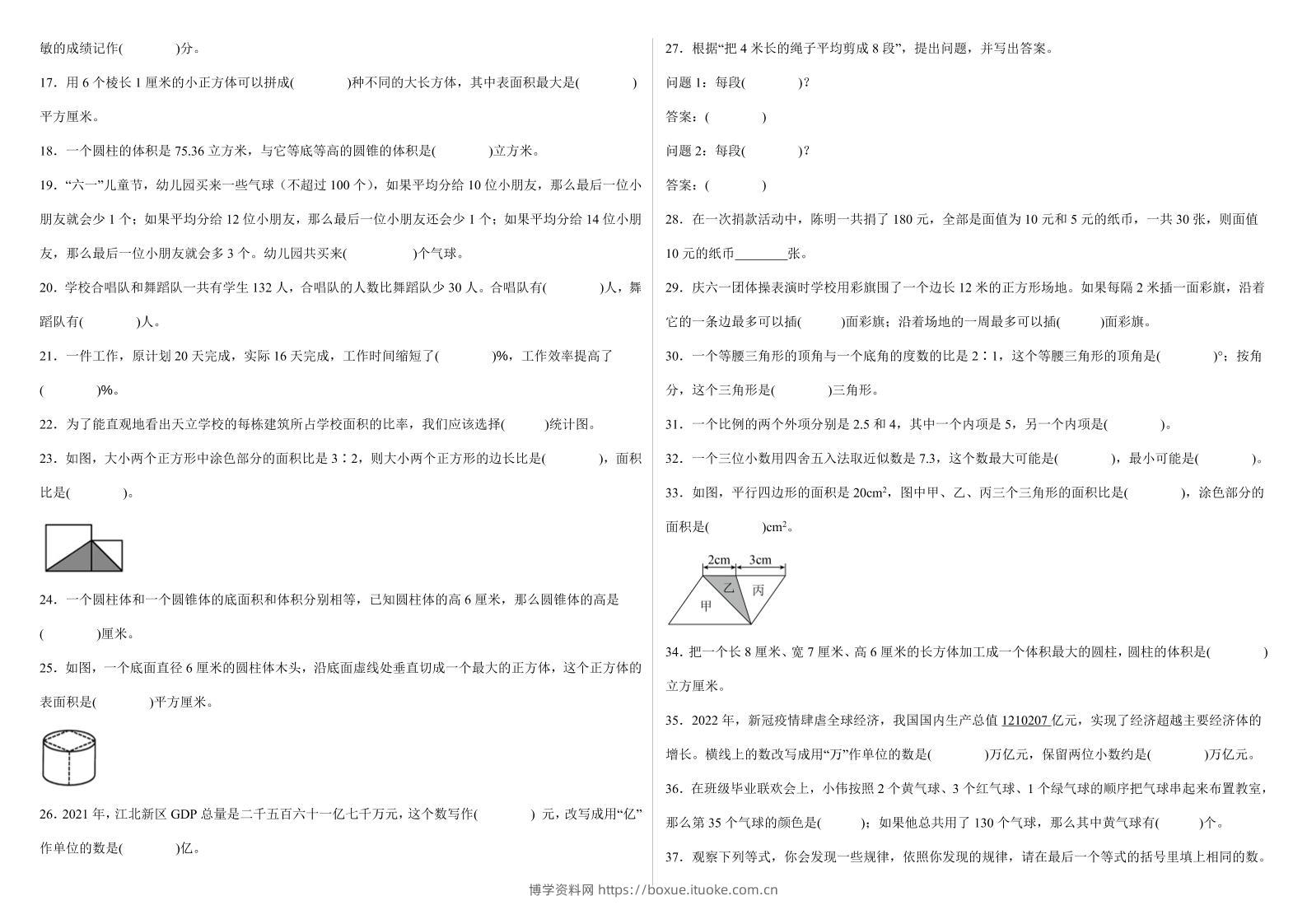 小升初数学填空题100题苏教版博学资料网7个月前发布关注私信486小升初数学填空题100题苏教版此内容为付费资源,请付费后查看¥6.8¥29.9VIP会员免费钻石VIP免费立即购买您当前未登录!建议登陆后购买,可保存购买订单格式pdf页数51 页大小1.54 MB付费资源 ——预览已结束,还剩49页未读——开通会员后可免费下载高清完整文档 © 版权声明文章版权归作者所有,未经允许请勿转载。THE END小升初 喜欢就支持一下吧点赞6 分享QQ空间微博QQ好友海报分享复制链接收藏
