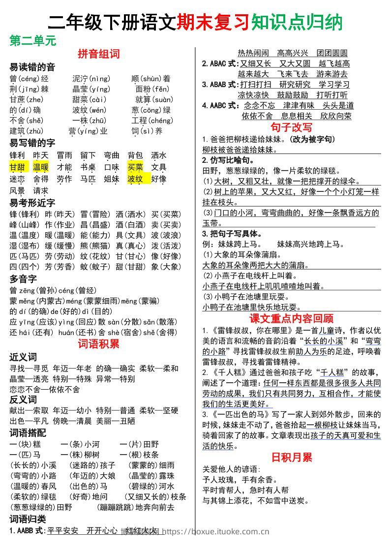 二下语文期末复习知识点归纳(8页极简版)博学资料网7个月前发布关注私信3011二下语文期末复习知识点归纳(8页极简版)此内容为付费资源,请付费后查看¥9.9¥29.9VIP会员免费钻石VIP免费立即购买您当前未登录!建议登陆后购买,可保存购买订单格式pdf页数8 页大小950.76 KB付费资源 ——预览已结束,还剩6页未读——开通会员后可免费下载高清完整文档 © 版权声明文章版权归作者所有,未经允许请勿转载。THE END小学语文 喜欢就支持一下吧点赞11 分享QQ空间微博QQ好友海报分享复制链接收藏