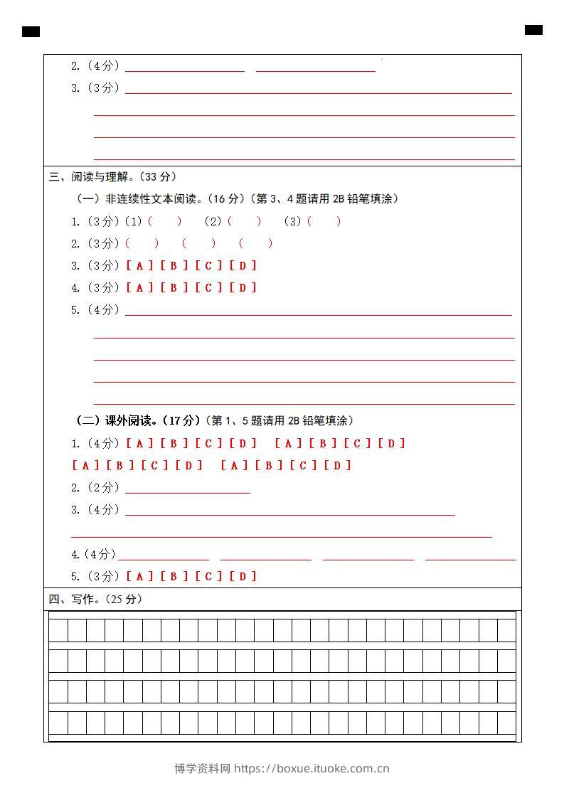 2024-2025学年第二学期五年级语文期末联考(六)答题卡【五下】博学资料网7个月前发布关注私信20122024-2025学年第二学期五年级语文期末联考(六)答题卡【五下】此内容为付费资源,请付费后查看¥9.9¥29.9VIP会员免费钻石VIP免费立即购买您当前未登录!建议登陆后购买,可保存购买订单格式pdf页数5 页大小101.32 KB付费资源 ——预览已结束,还剩3页未读——开通会员后可免费下载高清完整文档 © 版权声明文章版权归作者所有,未经允许请勿转载。THE END小学语文 喜欢就支持一下吧点赞12 分享QQ空间微博QQ好友海报分享复制链接收藏