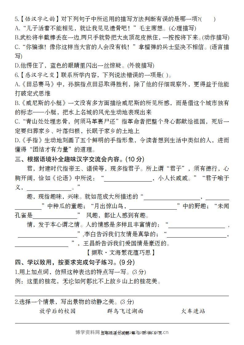 【2024-2025学年期末学情监测卷(一)】五下语文博学资料网7个月前发布关注私信4215【2024-2025学年期末学情监测卷(一)】五下语文此内容为付费资源,请付费后查看¥8.8¥29.9VIP会员免费钻石VIP免费立即购买您当前未登录!建议登陆后购买,可保存购买订单格式pdf页数8 页大小554.17 KB付费资源 ——预览已结束,还剩6页未读——开通会员后可免费下载高清完整文档 © 版权声明文章版权归作者所有,未经允许请勿转载。THE END小学语文 喜欢就支持一下吧点赞15 分享QQ空间微博QQ好友海报分享复制链接收藏