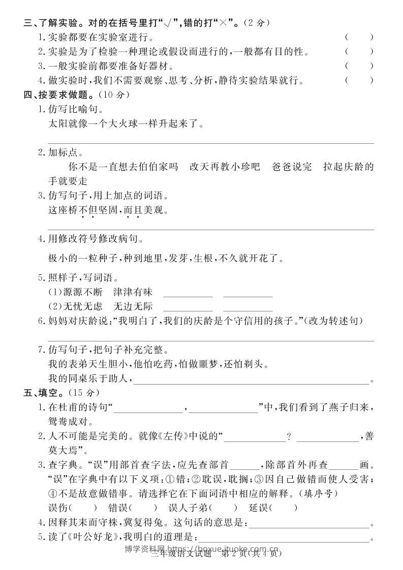 三下语文期末学情调研测试卷2博学资料网7个月前发布关注私信3914三下语文期末学情调研测试卷2此内容为付费资源,请付费后查看¥12.8¥29.9VIP会员免费钻石VIP免费立即购买您当前未登录!建议登陆后购买,可保存购买订单格式pdf页数5 页大小902.21 KB付费资源 ——预览已结束,还剩3页未读——开通会员后可免费下载高清完整文档 © 版权声明文章版权归作者所有,未经允许请勿转载。THE END小学语文 喜欢就支持一下吧点赞14 分享QQ空间微博QQ好友海报分享复制链接收藏