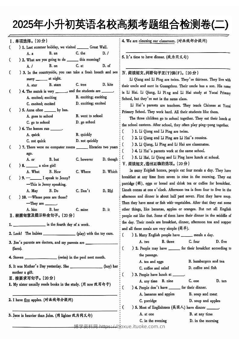 小升初英语【名校高频考题组合检测卷1-10】博学资料网7个月前发布关注私信2811小升初英语【名校高频考题组合检测卷1-10】此内容为付费资源,请付费后查看¥6.8¥29.9VIP会员免费钻石VIP免费立即购买您当前未登录!建议登陆后购买,可保存购买订单格式pdf页数11 页大小4.23 MB付费资源 ——预览已结束,还剩9页未读——开通会员后可免费下载高清完整文档 © 版权声明文章版权归作者所有,未经允许请勿转载。THE END小升初 喜欢就支持一下吧点赞11 分享QQ空间微博QQ好友海报分享复制链接收藏