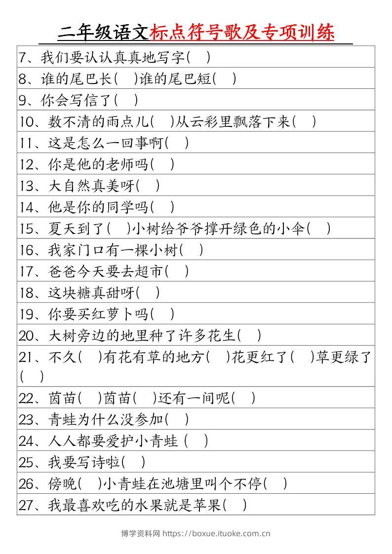 二年级语文标点符号歌及专项训练(4页)博学资料网6个月前发布关注私信3713二年级语文标点符号歌及专项训练(4页)此内容为付费资源,请付费后查看¥8.8¥29.9VIP会员免费钻石VIP免费立即购买您当前未登录!建议登陆后购买,可保存购买订单格式pdf页数4 页大小198.02 KB付费资源 ——预览已结束,还剩2页未读——开通会员后可免费下载高清完整文档 © 版权声明文章版权归作者所有,未经允许请勿转载。THE END小学语文 喜欢就支持一下吧点赞13 分享QQ空间微博QQ好友海报分享复制链接收藏