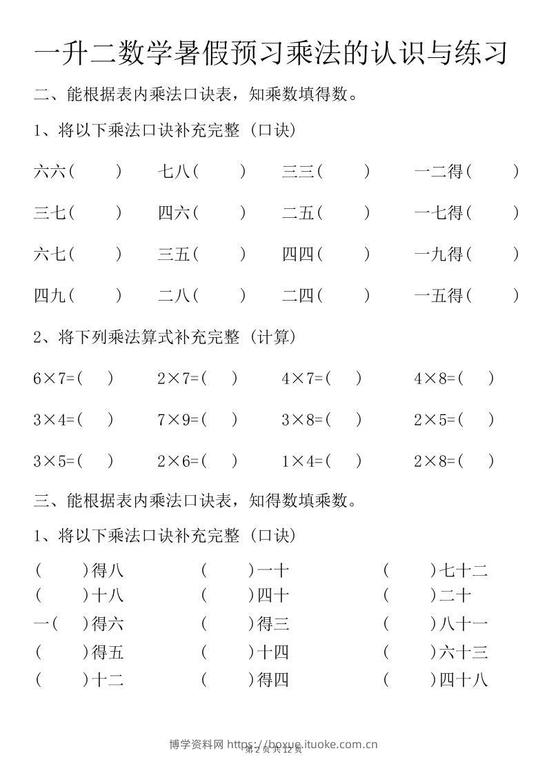 一升二数学暑假预习乘法的认识与练习前3页-二上数学博学资料网6个月前发布关注私信2715一升二数学暑假预习乘法的认识与练习前3页-二上数学此内容为付费资源,请付费后查看¥12.8¥29.9VIP会员免费钻石VIP免费立即购买您当前未登录!建议登陆后购买,可保存购买订单格式pdf页数3 页大小84.99 KB付费资源 ——预览已结束,还剩1页未读——开通会员后可免费下载高清完整文档 © 版权声明文章版权归作者所有,未经允许请勿转载。THE END小学数学 喜欢就支持一下吧点赞15 分享QQ空间微博QQ好友海报分享复制链接收藏
