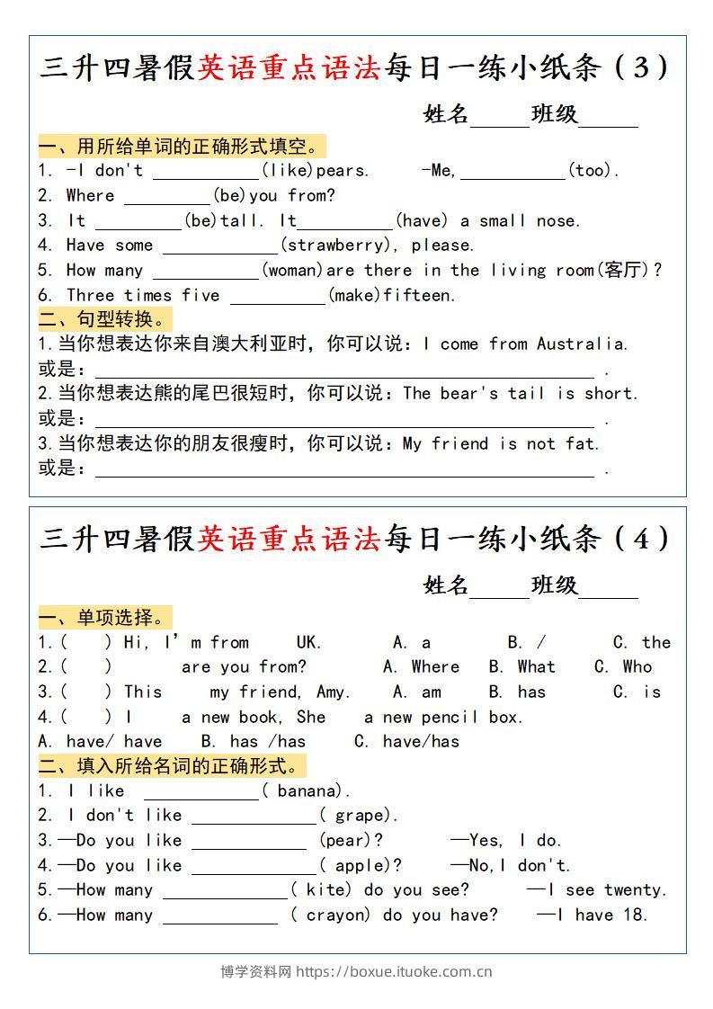 三升四暑假英语重点语法每日一练小纸条-四上英语博学资料网6个月前发布关注私信455三升四暑假英语重点语法每日一练小纸条-四上英语此内容为付费资源,请付费后查看¥8.8¥29.9VIP会员免费钻石VIP免费立即购买您当前未登录!建议登陆后购买,可保存购买订单格式pdf页数5 页大小299.29 KB付费资源 ——预览已结束,还剩3页未读——开通会员后可免费下载高清完整文档 © 版权声明文章版权归作者所有,未经允许请勿转载。THE END小学英语 喜欢就支持一下吧点赞5 分享QQ空间微博QQ好友海报分享复制链接收藏