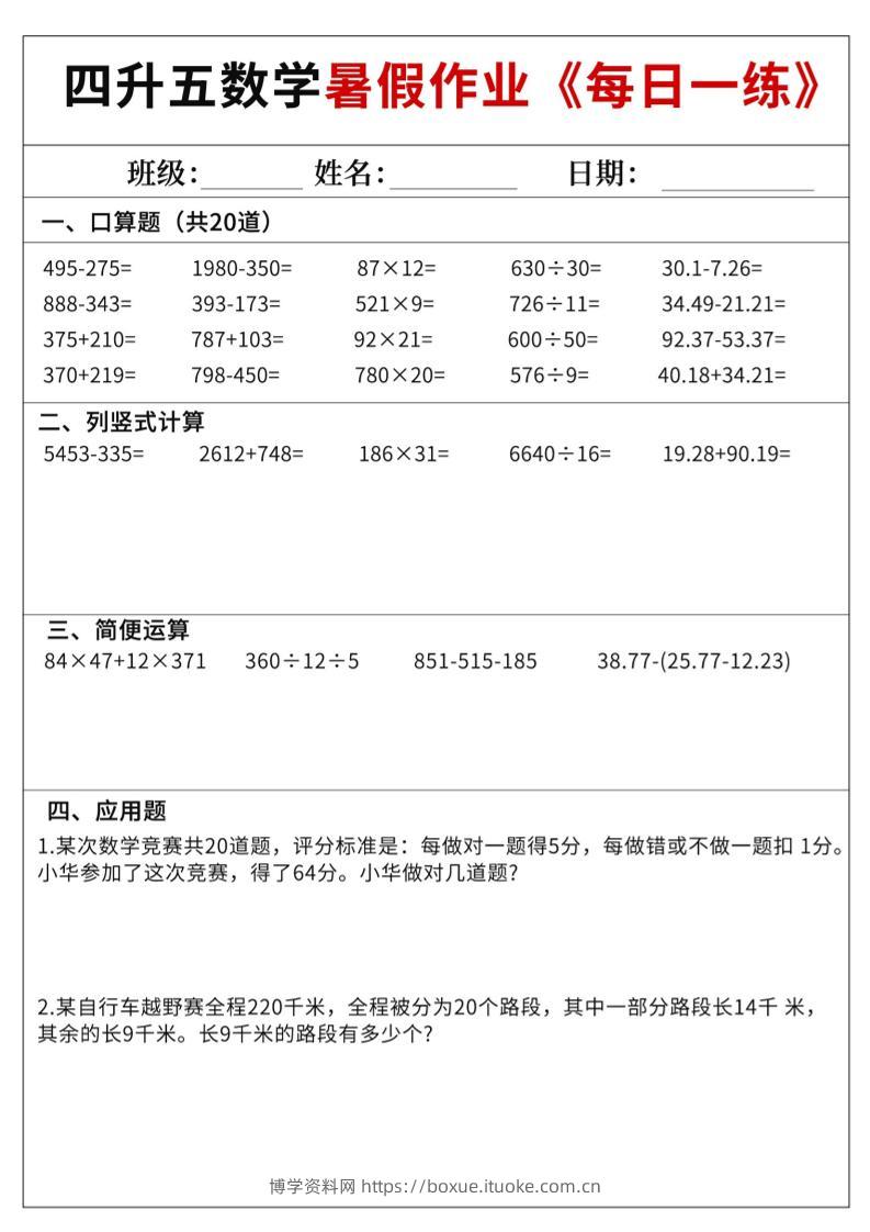 四升五数学暑假作业每日一练60天附答案五上数学博学资料网6个月前发布关注私信309四升五数学暑假作业每日一练60天附答案五上数学此内容为付费资源,请付费后查看¥9.9¥29.9VIP会员免费钻石VIP免费立即购买您当前未登录!建议登陆后购买,可保存购买订单格式pdf页数70 页大小21.43 MB付费资源 ——预览已结束,还剩68页未读——开通会员后可免费下载高清完整文档 © 版权声明文章版权归作者所有,未经允许请勿转载。THE END小学数学 喜欢就支持一下吧点赞9 分享QQ空间微博QQ好友海报分享复制链接收藏