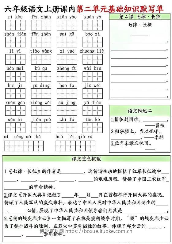 六上语文课内1-8单元基础知识默写单8页博学资料网6个月前发布关注私信2415六上语文课内1-8单元基础知识默写单8页此内容为付费资源,请付费后查看¥6.8¥29.9VIP会员免费钻石VIP免费立即购买您当前未登录!建议登陆后购买,可保存购买订单格式pdf页数8 页大小4.23 MB付费资源 ——预览已结束,还剩6页未读——开通会员后可免费下载高清完整文档 © 版权声明文章版权归作者所有,未经允许请勿转载。THE END小学语文 喜欢就支持一下吧点赞15 分享QQ空间微博QQ好友海报分享复制链接收藏