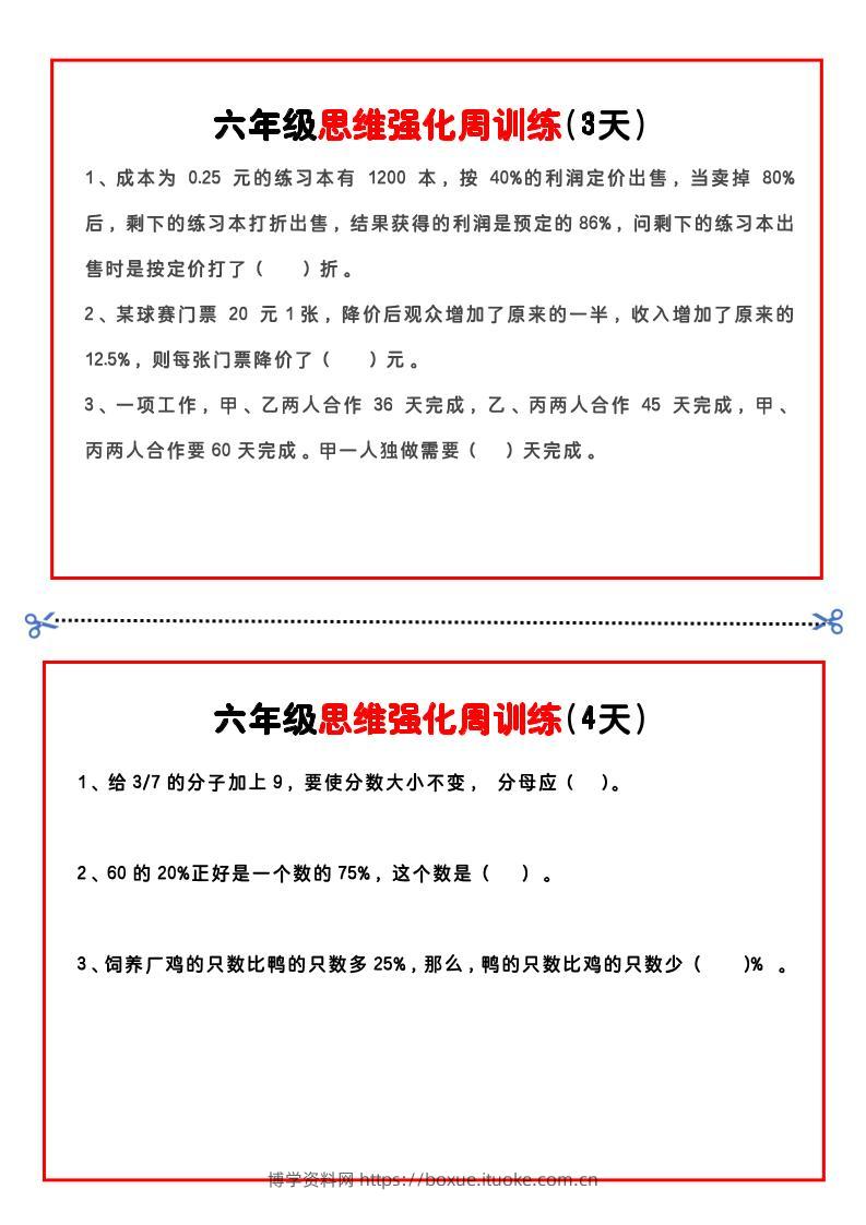 【六年级上】数学思维周训练小纸条博学资料网6个月前发布关注私信4412【六年级上】数学思维周训练小纸条此内容为付费资源,请付费后查看¥6.8¥29.9VIP会员免费钻石VIP免费立即购买您当前未登录!建议登陆后购买,可保存购买订单格式pdf页数4 页大小206.38 KB付费资源 ——预览已结束,还剩2页未读——开通会员后可免费下载高清完整文档 © 版权声明文章版权归作者所有,未经允许请勿转载。THE END小学数学 喜欢就支持一下吧点赞12 分享QQ空间微博QQ好友海报分享复制链接收藏