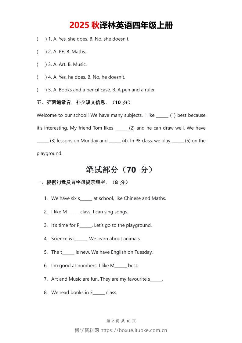 2025年秋译林版四上英语Unit1Ourschoolsubjects单元测试卷博学资料网8个月前发布关注私信4472025年秋译林版四上英语Unit1Ourschoolsubjects单元测试卷此内容为付费资源,请付费后查看¥12.8¥29.9VIP会员免费钻石VIP免费立即购买您当前未登录!建议登陆后购买,可保存购买订单格式pdf页数10 页大小343.74 KB付费资源 ——预览已结束,还剩8页未读——开通会员后可免费下载高清完整文档 © 版权声明文章版权归作者所有,未经允许请勿转载。THE END小学英语 喜欢就支持一下吧点赞7 分享QQ空间微博QQ好友海报分享复制链接收藏