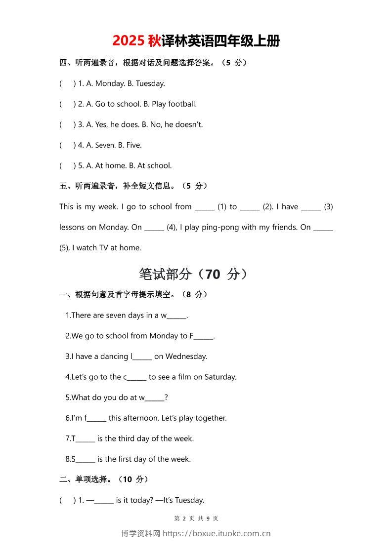 2025年秋译林版四上英语Unit3Myweek单元测试卷博学资料网8个月前发布关注私信4882025年秋译林版四上英语Unit3Myweek单元测试卷此内容为付费资源,请付费后查看¥8.8¥29.9VIP会员免费钻石VIP免费立即购买您当前未登录!建议登陆后购买,可保存购买订单格式pdf页数9 页大小250.46 KB付费资源 ——预览已结束,还剩7页未读——开通会员后可免费下载高清完整文档 © 版权声明文章版权归作者所有,未经允许请勿转载。THE END小学英语 喜欢就支持一下吧点赞8 分享QQ空间微博QQ好友海报分享复制链接收藏