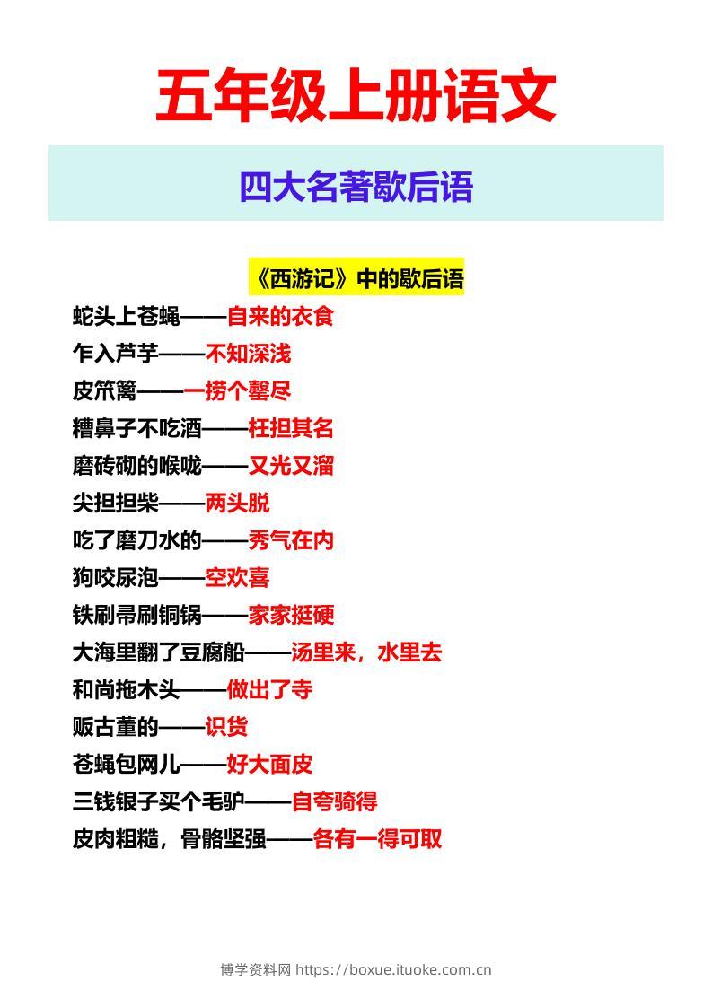 【2025秋新版】五年级上册语文四大名著歇后语博学资料网6个月前发布关注私信355【2025秋新版】五年级上册语文四大名著歇后语此内容为付费资源,请付费后查看¥6.8¥29.9VIP会员免费钻石VIP免费立即购买您当前未登录!建议登陆后购买,可保存购买订单格式pdf页数5 页大小167.01 KB付费资源 ——预览已结束,还剩3页未读——开通会员后可免费下载高清完整文档 © 版权声明文章版权归作者所有,未经允许请勿转载。THE END小学语文 喜欢就支持一下吧点赞5 分享QQ空间微博QQ好友海报分享复制链接收藏
