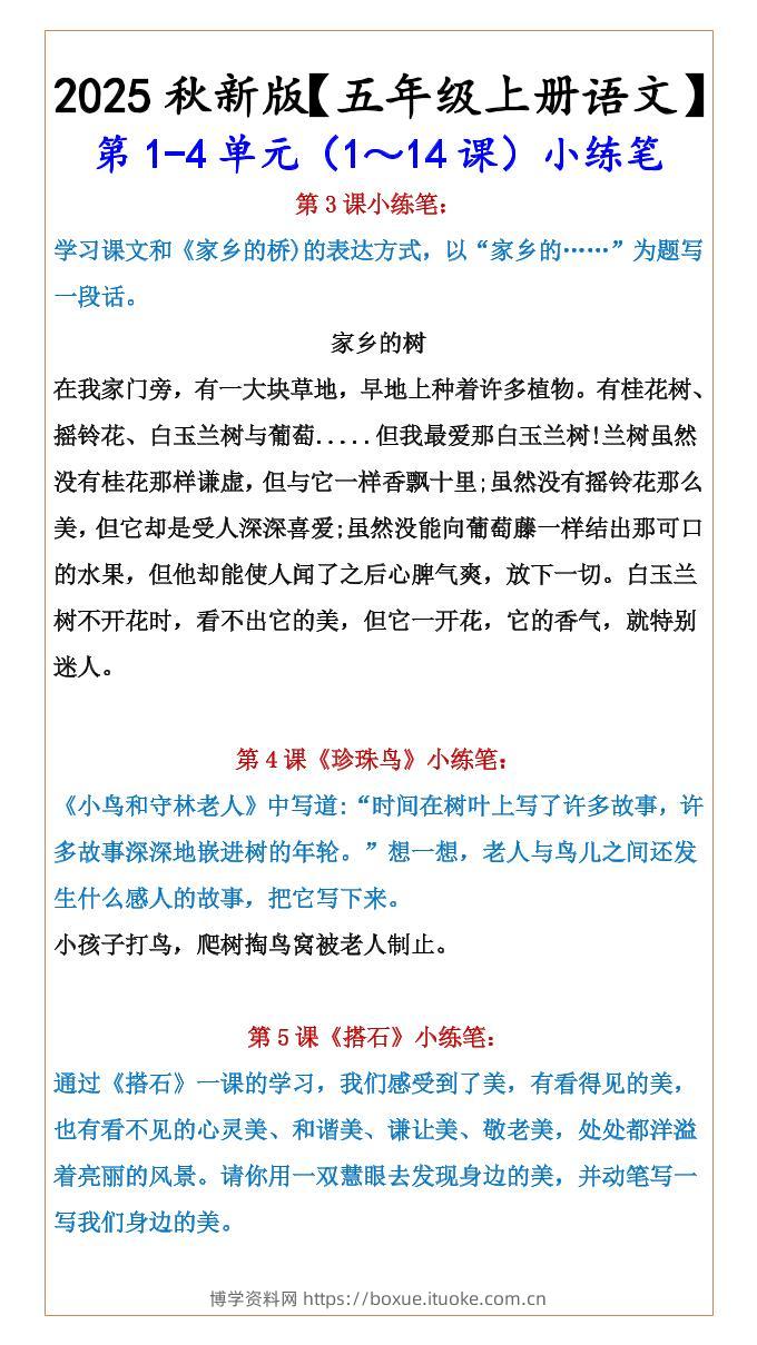 【2025秋新版】【五年级上册语文】第1-4单元(1~14课)小练笔博学资料网8个月前发布关注私信4013【2025秋新版】【五年级上册语文】第1-4单元(1~14课)小练笔此内容为付费资源,请付费后查看¥6.8¥29.9VIP会员免费钻石VIP免费立即购买您当前未登录!建议登陆后购买,可保存购买订单格式pdf页数5 页大小150.78 KB付费资源 ——预览已结束,还剩3页未读——开通会员后可免费下载高清完整文档 © 版权声明文章版权归作者所有,未经允许请勿转载。THE END小学语文 喜欢就支持一下吧点赞13 分享QQ空间微博QQ好友海报分享复制链接收藏