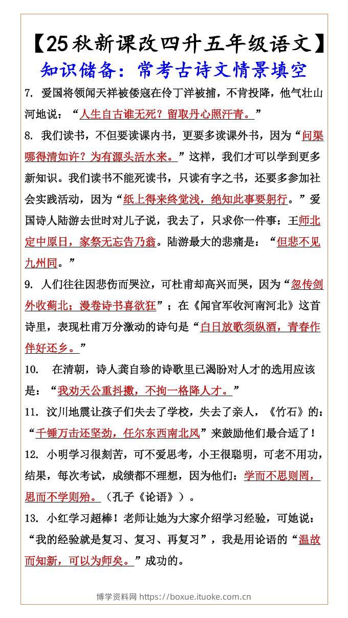 【2025秋新版】【四升五年级语文】知识储备:常考古诗文情景填空-五上语文博学资料网6个月前发布关注私信2810【2025秋新版】【四升五年级语文】知识储备:常考古诗文情景填空-五上语文此内容为付费资源,请付费后查看¥12.8¥29.9VIP会员免费钻石VIP免费立即购买您当前未登录!建议登陆后购买,可保存购买订单格式pdf页数4 页大小151.14 KB付费资源 ——预览已结束,还剩2页未读——开通会员后可免费下载高清完整文档 © 版权声明文章版权归作者所有,未经允许请勿转载。THE END小学语文 喜欢就支持一下吧点赞10 分享QQ空间微博QQ好友海报分享复制链接收藏