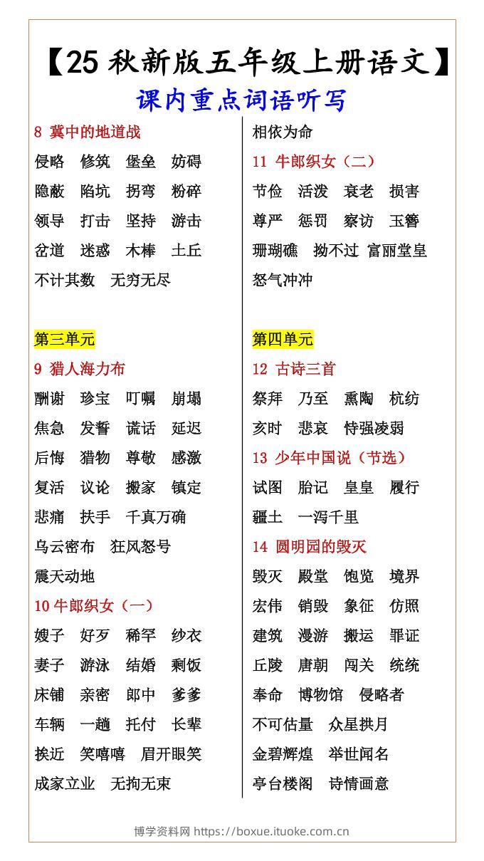 【2025秋新版】【五年级上册语文】课内重点词语听写博学资料网6个月前发布关注私信256【2025秋新版】【五年级上册语文】课内重点词语听写此内容为付费资源,请付费后查看¥9.9¥29.9VIP会员免费钻石VIP免费立即购买您当前未登录!建议登陆后购买,可保存购买订单格式pdf页数5 页大小200.09 KB付费资源 ——预览已结束,还剩3页未读——开通会员后可免费下载高清完整文档 © 版权声明文章版权归作者所有,未经允许请勿转载。THE END小学语文 喜欢就支持一下吧点赞6 分享QQ空间微博QQ好友海报分享复制链接收藏