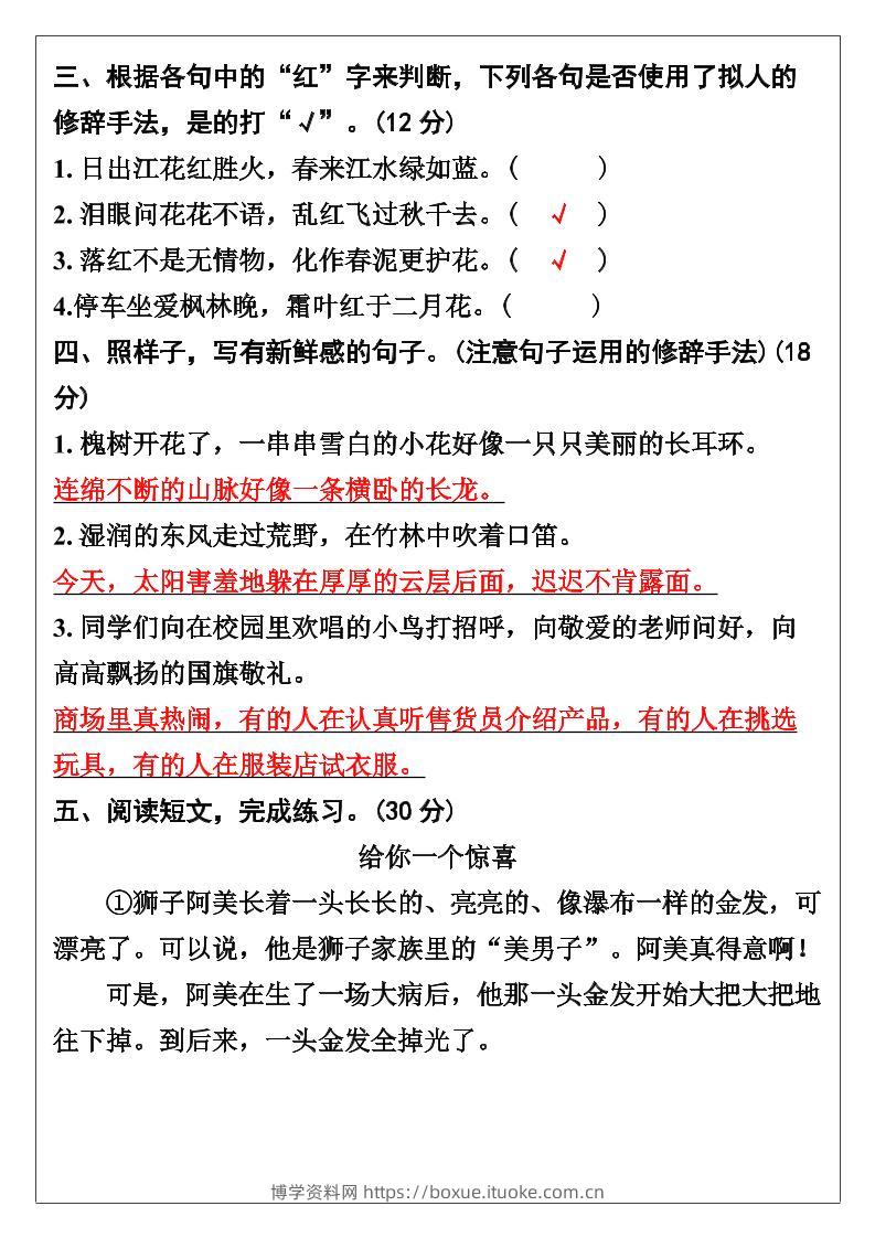 【2025秋新版】三年级语文上册期末复习《修辞手法》专项训练博学资料网6个月前发布关注私信417【2025秋新版】三年级语文上册期末复习《修辞手法》专项训练此内容为付费资源,请付费后查看¥12.8¥29.9VIP会员免费钻石VIP免费立即购买您当前未登录!建议登陆后购买,可保存购买订单格式pdf页数4 页大小166.19 KB付费资源 ——预览已结束,还剩2页未读——开通会员后可免费下载高清完整文档 © 版权声明文章版权归作者所有,未经允许请勿转载。THE END小学语文 喜欢就支持一下吧点赞7 分享QQ空间微博QQ好友海报分享复制链接收藏