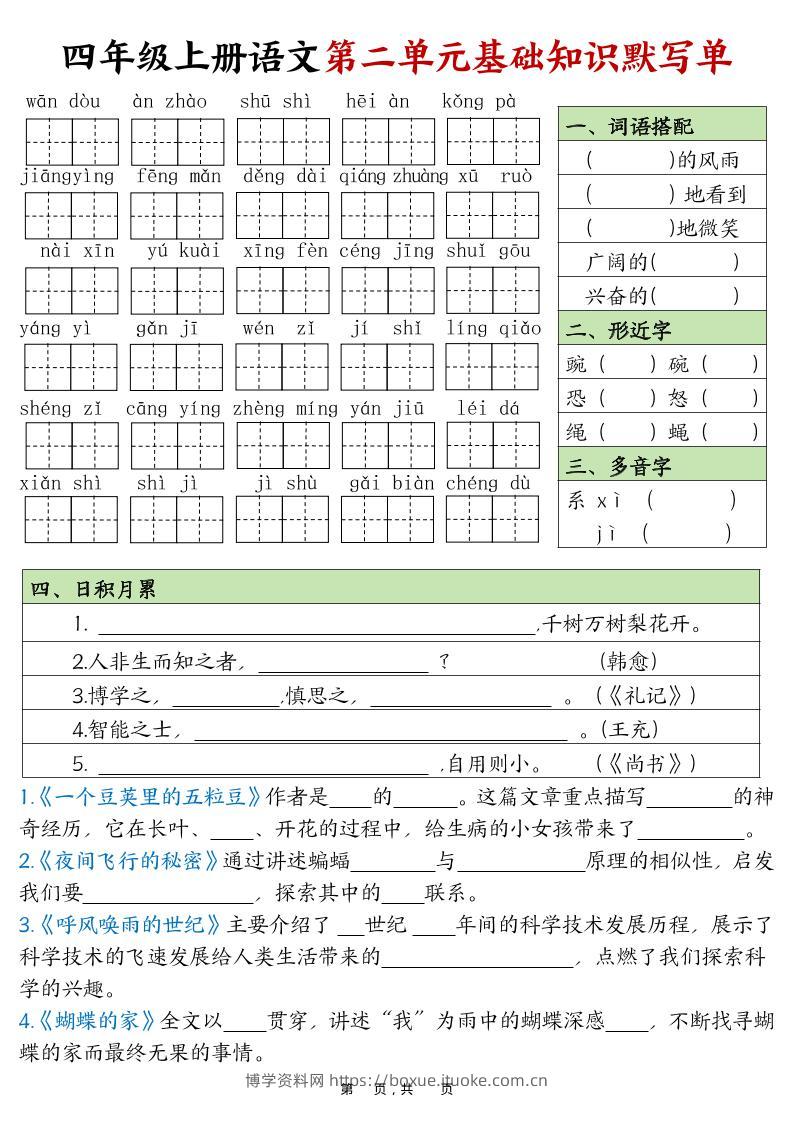 四上语文1-8单元基础知识默写单(含答案16页)博学资料网7个月前发布关注私信327四上语文1-8单元基础知识默写单(含答案16页)此内容为付费资源,请付费后查看¥8.8¥29.9VIP会员免费钻石VIP免费立即购买您当前未登录!建议登陆后购买,可保存购买订单格式pdf页数16 页大小780.30 KB付费资源 ——预览已结束,还剩14页未读——开通会员后可免费下载高清完整文档 © 版权声明文章版权归作者所有,未经允许请勿转载。THE END小学语文 喜欢就支持一下吧点赞7 分享QQ空间微博QQ好友海报分享复制链接收藏