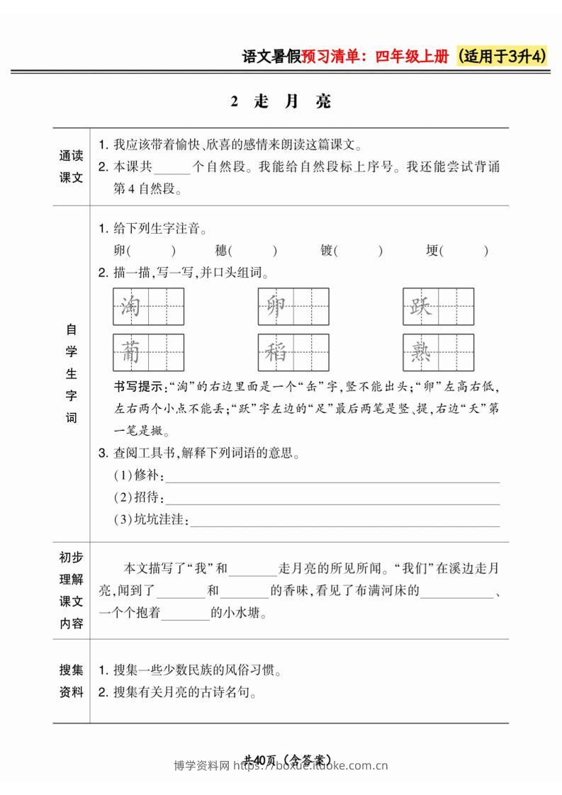 三升四小学语文《暑假预习清单》最新版-四上数学博学资料网5个月前发布关注私信4515三升四小学语文《暑假预习清单》最新版-四上数学此内容为付费资源,请付费后查看¥9.9¥29.9VIP会员免费钻石VIP免费立即购买您当前未登录!建议登陆后购买,可保存购买订单格式pdf页数40 页大小5.84 MB付费资源 ——预览已结束,还剩38页未读——开通会员后可免费下载高清完整文档 © 版权声明文章版权归作者所有,未经允许请勿转载。THE END小学语文 喜欢就支持一下吧点赞15 分享QQ空间微博QQ好友海报分享复制链接收藏